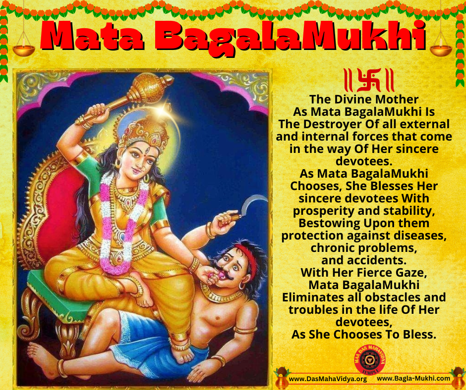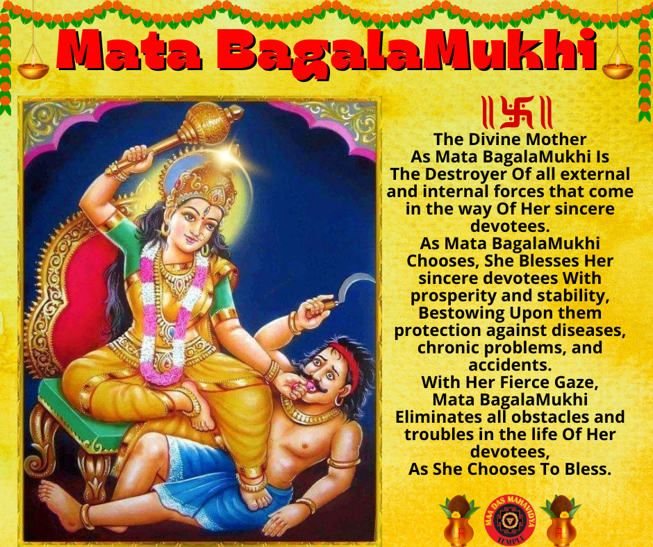 The Divine Mother As Mata BagalaMukhi Is The Destroyer Of all external and internal forces that come in the way Of Her sincere devotees. As