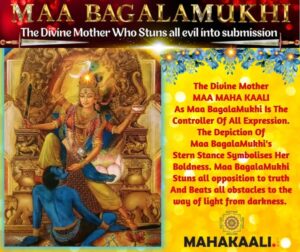 Depicted In Her Divine Stern Stance,The Divine Mother In Her Great Cosmic Wisdom Form As Mata BagalaMukhiIs The Controller Of Expression.Mata BagalaMukhi Teaches the sincere